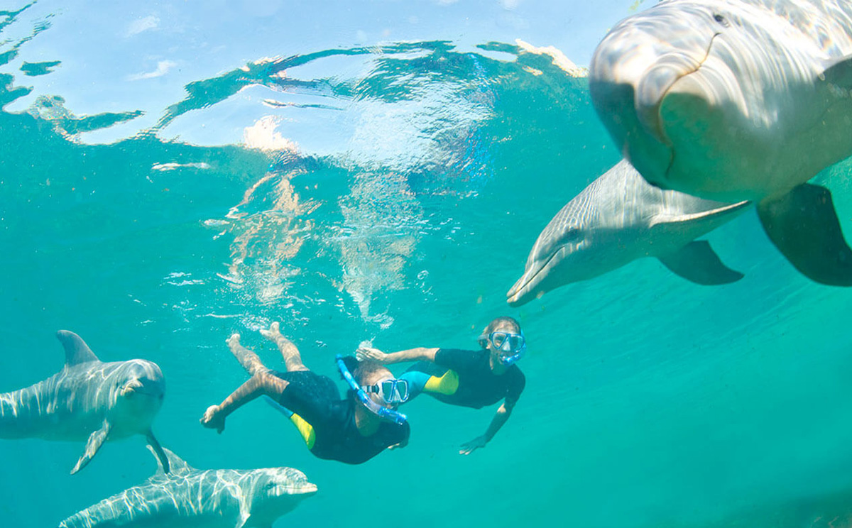 head to the western pier to board a speedboat to Dolphin Bay. The best time to see dolphins is between 8-9 AM. Witness dolphins jumping out of the water and swimming up close. At around 10:00 AM, head to a fish-rich area for snorkeling. Afterward, visit the wildlife Bird Park, which showcases African wildlife.